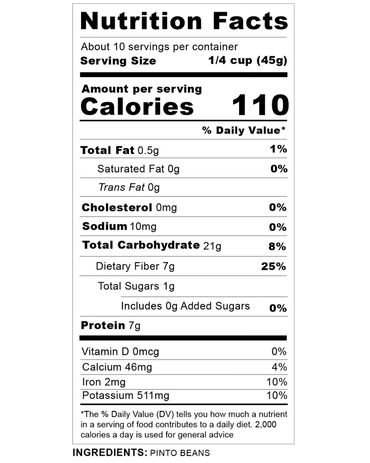 Pinto beans pair well with cumin, chili, garlic, and onion. They have a creamy, comforting texture that are versatile in any recipe.